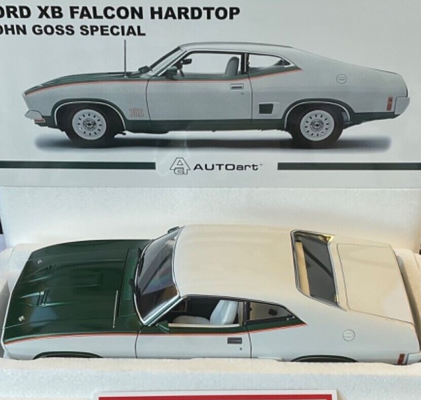 Biante Model Cars are very pleased to present the 1:18 Scale Ford XB Falcon Hardtop John Goss Special Mcleod Ford Horn Car option in Emerald Fire Over Polar White.