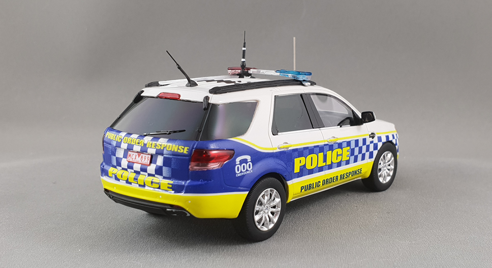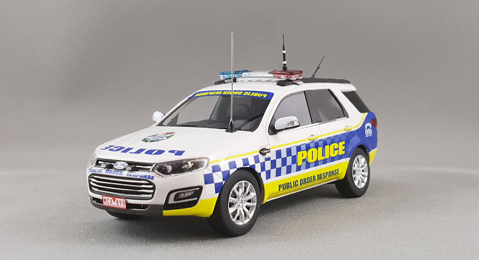 Victoria Police Public Order Response Unit – 2016 Ford Territory SUV 1:43 scale handcrafted beautifully detailed resin model Use of Victoria Police Logo and vehicle livery used in agreement with Victoria Police Portion of sales profit provided to support ‘Victoria Police Legacy’ Licensed FORD product