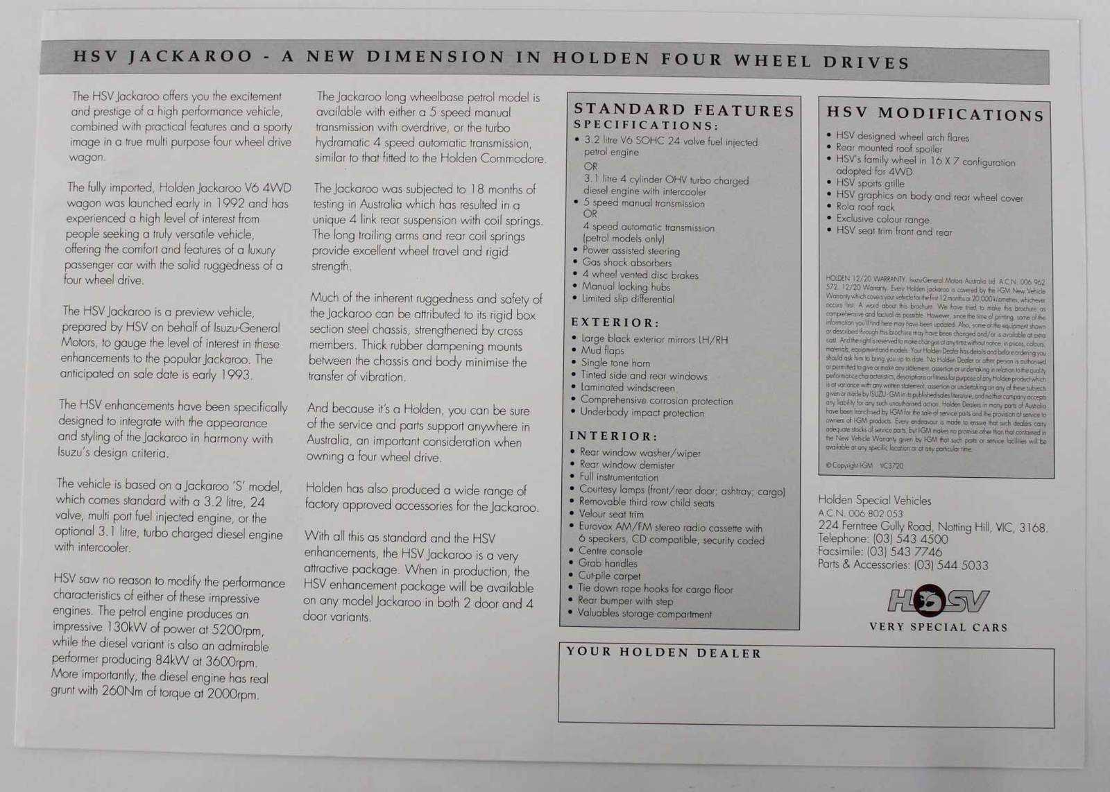 This is a HSV Jackaroo Leaflet.