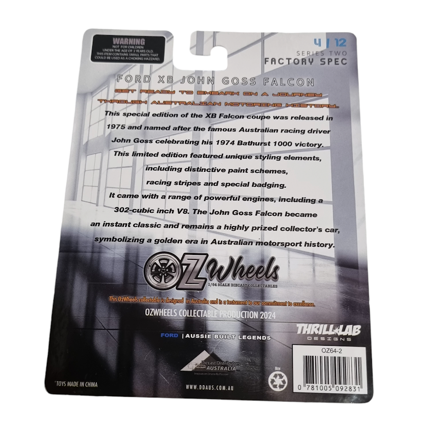Product: Oz Wheels Ford XB John Goss Special Falcon 4/12 Factory Spec 1:64 Scale Diecast Collectable Condition: New Brand: Oz Wheels Series Two Factory Spec Number 4/12 Combined postage available by using the add to cart feature.