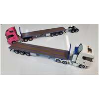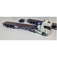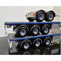 Blue and Silver Road train set with dolly Trucks not included and bolsters are removable as well as the head boards