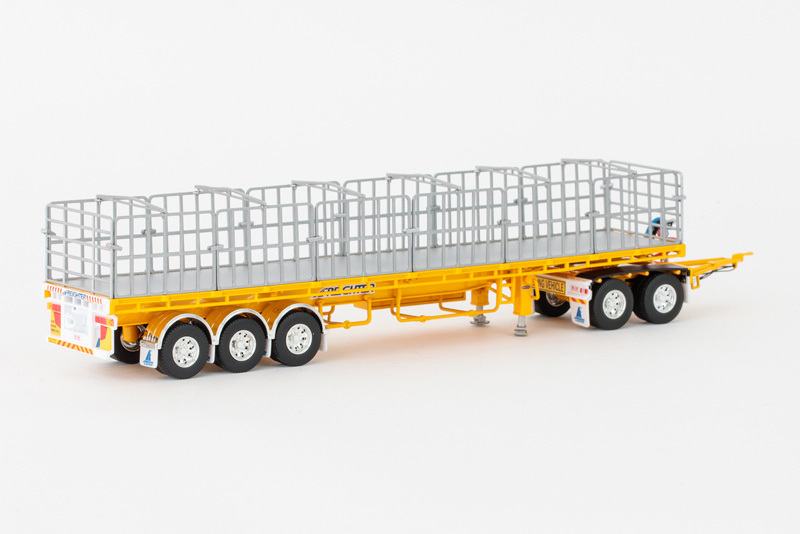 Includes: 1x B Trailer 1x Road Train Dolly Dimensions B Trailer - 175mm x 50mm x 35mm (65mm with gates) Dolly - 110mm x 50mm 40mm Material: Diecast Scale: 1:50 Item ID: ZT09148 Brand: Drake
